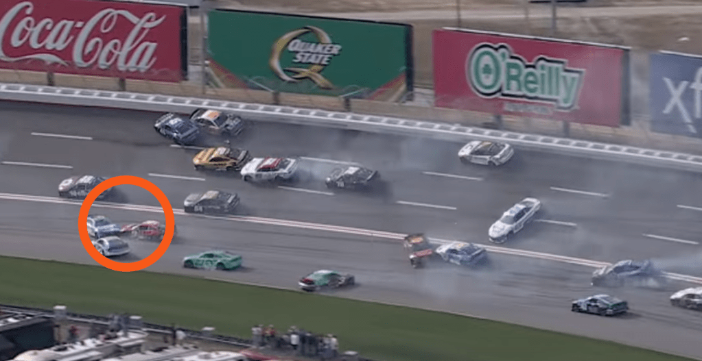Any handling advantage was lost when the 16-car lap 2 wreck included the Hooters Chevrolet.